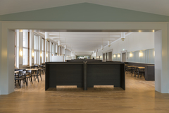 The Lyra solid wooden chair with its warm minimalism continues the factual language of the horgenglarus collection into the 21st century. It is the comfortable evolution of the compact, straight miro chair. The bold sweeps of backrest and rear legs give distinction to Lyra's geometry. Lyra is horgenglarus' most successful and, with 32 models, also our most comprehensive chair family. Thanks to a variety of seat widths, depths and heights as well as materials, the Lyra is suited for a wide range of purposes and architectural styles. A staff canteen needs a different type of chair than a café, bistro, or fine-dining restaurant. A council chamber or boardroom makes other demands than a hotel room or a private dining room. Larger hotels, restaurants, or administrative offices often combine more than one usage type in one building. Lyra's end-to-end design line offers a large variety of functions: different backrests, not only chairs, but also upholstered and lounge armchairs as well as bar stools in two heights. The seat's comfort level also varies from wooden seat or cushion to very comfortable belt upholstery.